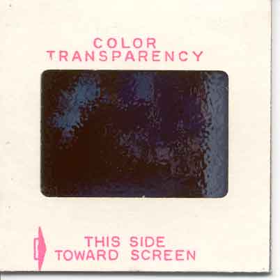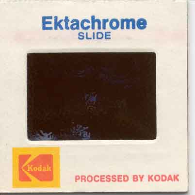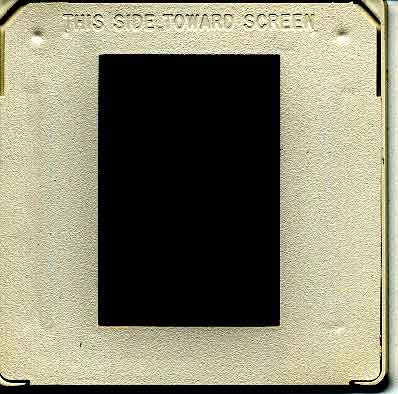 IFO, VOB and BUP files (required for DVD Player compatibility) A Picture Montage- is a series of slides, photographs, or negatives set to music. We also call this a slide show. As an example, a wedding "Picture Montage" could begin with the Bride's childhood pictures, then the Groom's. Finally the picture show could close with pictures of the couple. Music can be used for each group of pictures or for the full montage. If the montage is part of a longer video production, it will usually be shown first. The length of a slideshow is determined by the number of pictures, and the time each picture will be shown. The length of music can also be used to determine the amount of time for each picture. We recommend 6 or 7 seconds per picture. How to determine if slides are "this side to screen"? If your slides have been remounted, it may not be obvious which side is to screen. WHEN LOOKING THROUGH THE SLIDE FROM THE "THIS SIDE TO SCREEN" SIDE, YOU SHOULD SEE THE IMAGE IN REVERSE (LIKE LOOKING IN A MIRROR). Some slide mounts have "THIS SIDE TO SCREEN" imprinted in the plastic or written in text (see examples below). You may want to look for printing or text in a picture, (Look for text in the pictures, license plates on vehicles, rotary telephones, shirts with lettering, magazines, wedding rings, men's shirt pockets). All three of the slides shown below are "THIS SIDE TO SCREEN". Here are a few other methods to determine THIS SIDE TO SCREEN or the emulsion side. (A) text will appear backwards in photo. (B) while holding the slide at various angles to light, you may be able to see the texture of the emulsion verses the base side's glossy surface (this technique varies by the type of film - it works well for Kodachrome). (C) The logo of the processor will normally appear on the emulsion / THIS SIDE TO SCREEN side (see picture below for Kodak, but similar for Fuji or Agfa). (D) while holding the slide at various angles to light, a visible "inside curve" bow should be evident in the emulsion / THIS SIDE TO SCREEN side of the film, since slide film bows during processing due to emulsion shrinking as it dries. (E) for negative film, the frame numbers, text, and film type appear backwards along the sprocket edge of the film.